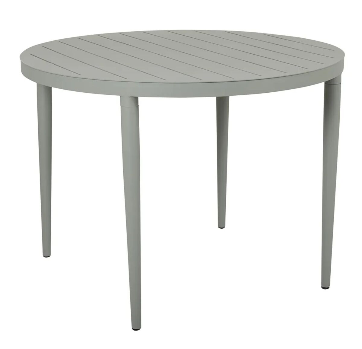 Bigby pyöreän ruokapöydän suorat ja tyylikkäät yksityiskohdat tarjoavat kauniin kontrastin kaarevan muodon rinnalle. Jalkojen sisäänrakennetut kierrejalat helpottavat pöydän säätämistä epätasaiselle pinnalle. Pyöreä pöytä on helppo sijoittaa ulkotiloihin yhdistäen sen kanssa haluamasi puutarhatuolit. Tämän pöydän ympärille mahtuu hyvin neljä tuolia. Valmistettu ruostumattomasta alumiinista, joka on säänkestävä ja huoltovapaa materiaali. Pöytä on helppo säilöä varastossa jalat irrallaan.