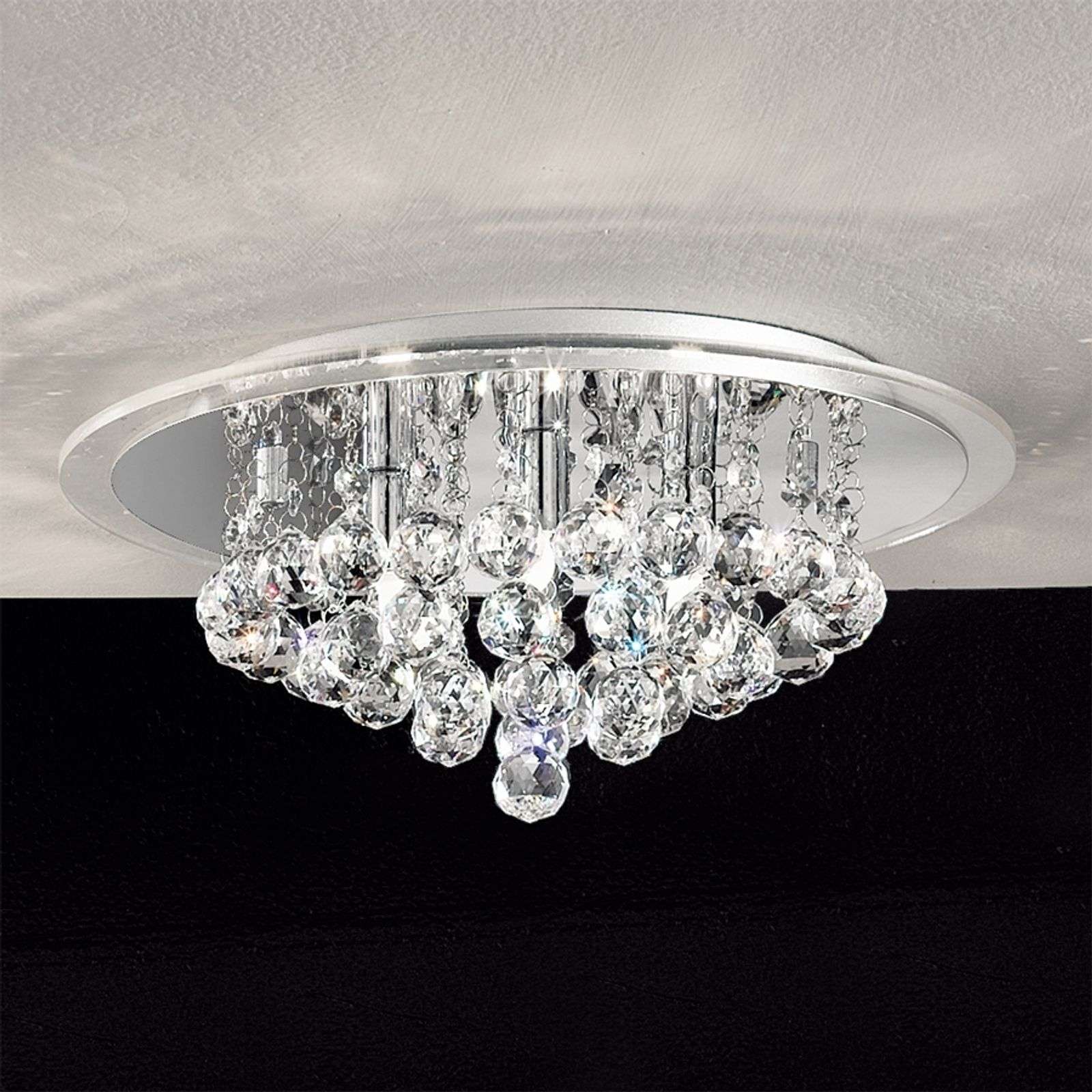 Briljantti kattovalaisin kristallikauluksella DESPINA 2 kokoa Tämä jalo kattolamppu DESPINA säteilee jopa ilman valaistusta. Kromipeilattu kattolevyllä varustettu halogeenilamppu ja runsaat kristalliriipukset takaavat optimaalisen valaistuksen ja voimakkaat valaistusheijastukset. Kattovalaisinta on saatavana 2 kokoa (Ø 38 cm ja 50 cm). Energialuokka: A++