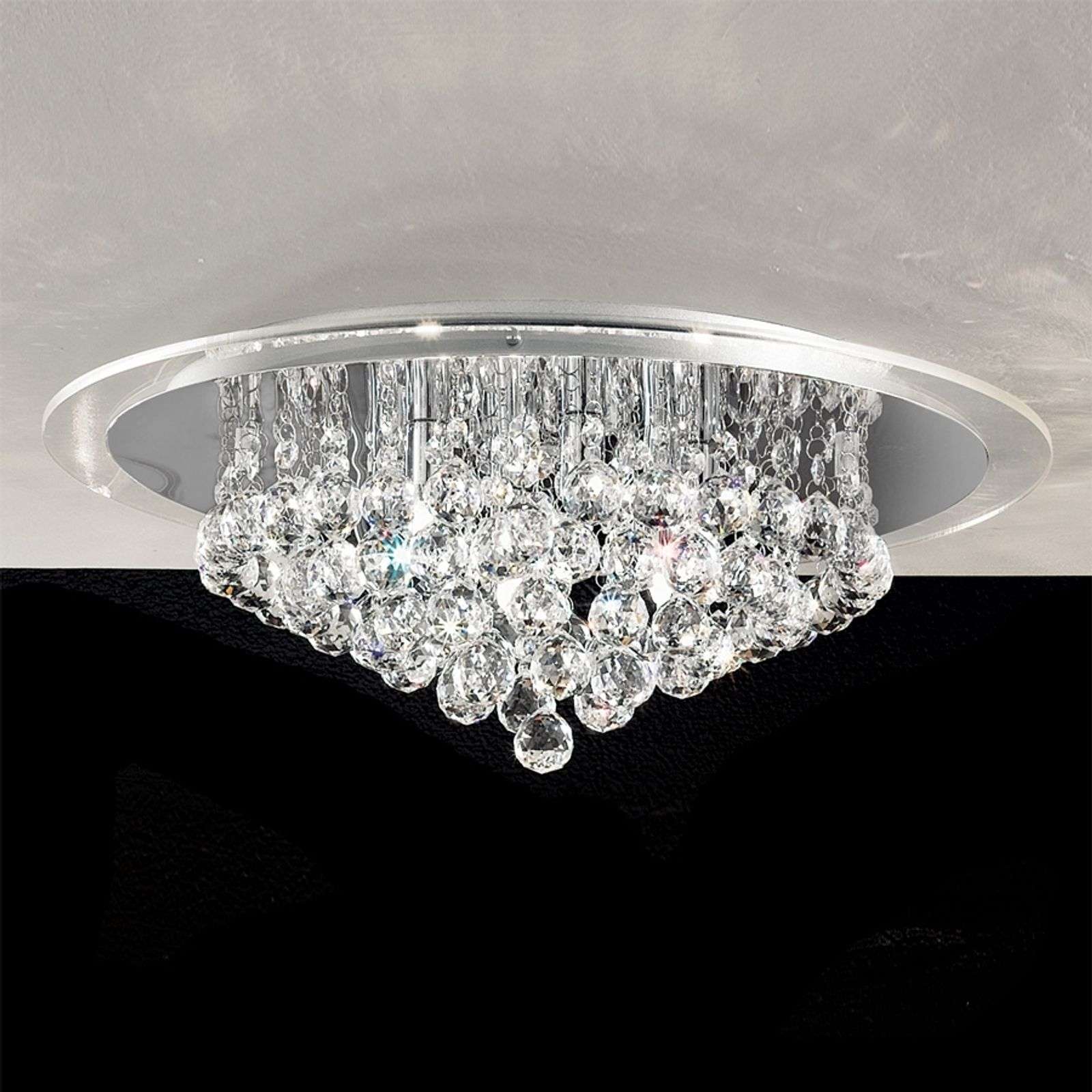 Briljantti kattovalaisin kristallikauluksella DESPINA 2 kokoa Tämä jalo kattolamppu DESPINA säteilee jopa ilman valaistusta. Kromipeilattu kattolevyllä varustettu halogeenilamppu ja runsaat kristalliriipukset takaavat optimaalisen valaistuksen ja voimakkaat valaistusheijastukset. Kattovalaisinta on saatavana 2 kokoa (Ø 38 cm ja 50 cm). Energialuokka: A++