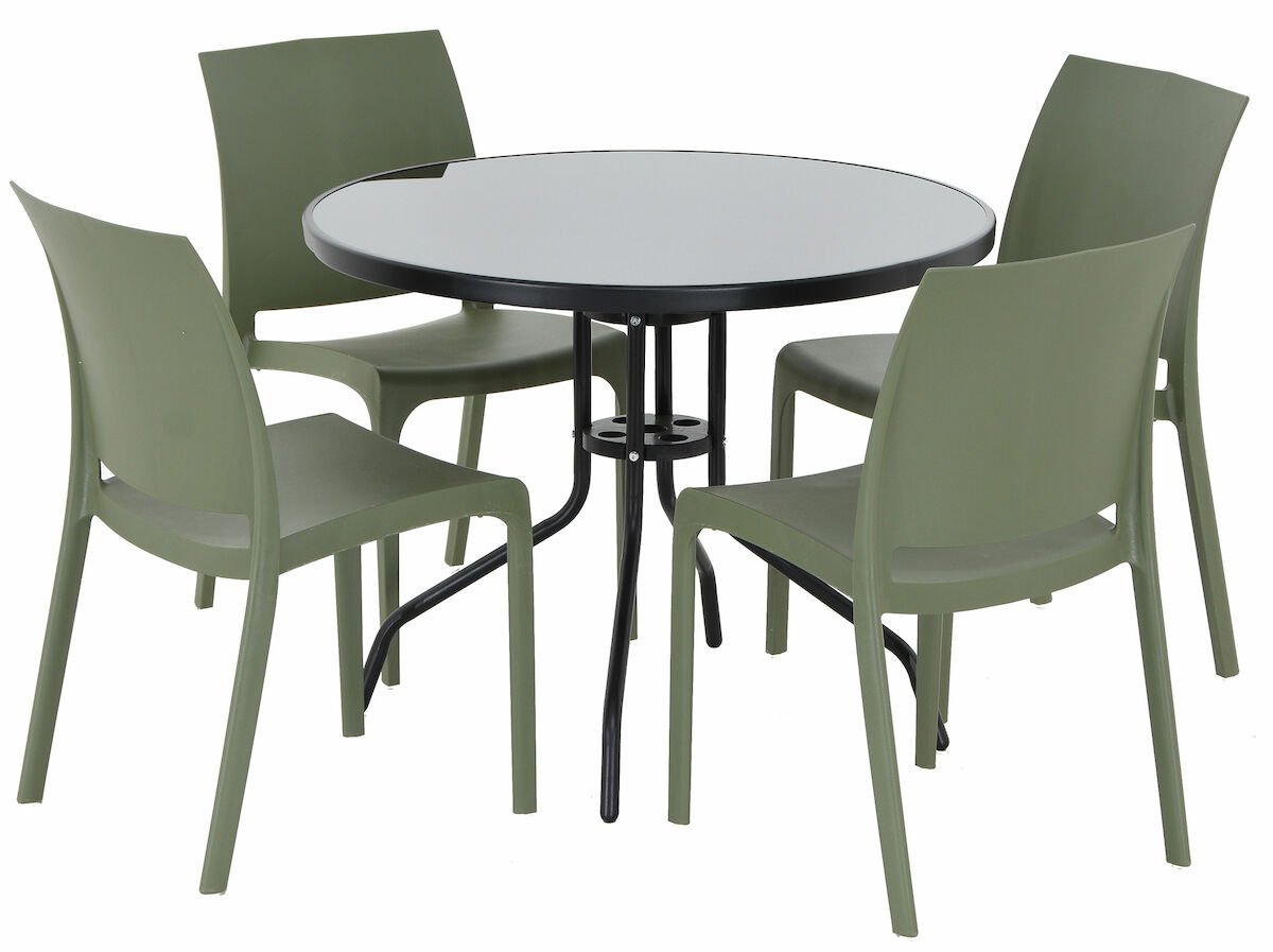 Cafe-Iiris on helppohoitoinen ja ihastuttavan pirteä, sirokokoinen ruokailuryhmä terassille tai parvekkeelle. Cafe pöydässä on kaunis tumma lasikansi ja sirot mustat metallijalat. Halkaisija on 90 cm. Valmistusmaa Kiina. Toimitetaan osina paketissa.Selkeälinjaiset ja värikkäät Iiris tuolit ovat pihan piristysruiske! Tuoli on valmistettu kestävästä ja huoltovapaasta polypropyleenistä. Ne pysyvät tukevasti paikoillaan jalkojen alla olevien liukumattomien nappuloiden ansiosta. Tuolit ovat pinottavia, joka helpottaa säilytystä. Valmistusmaa Italia.