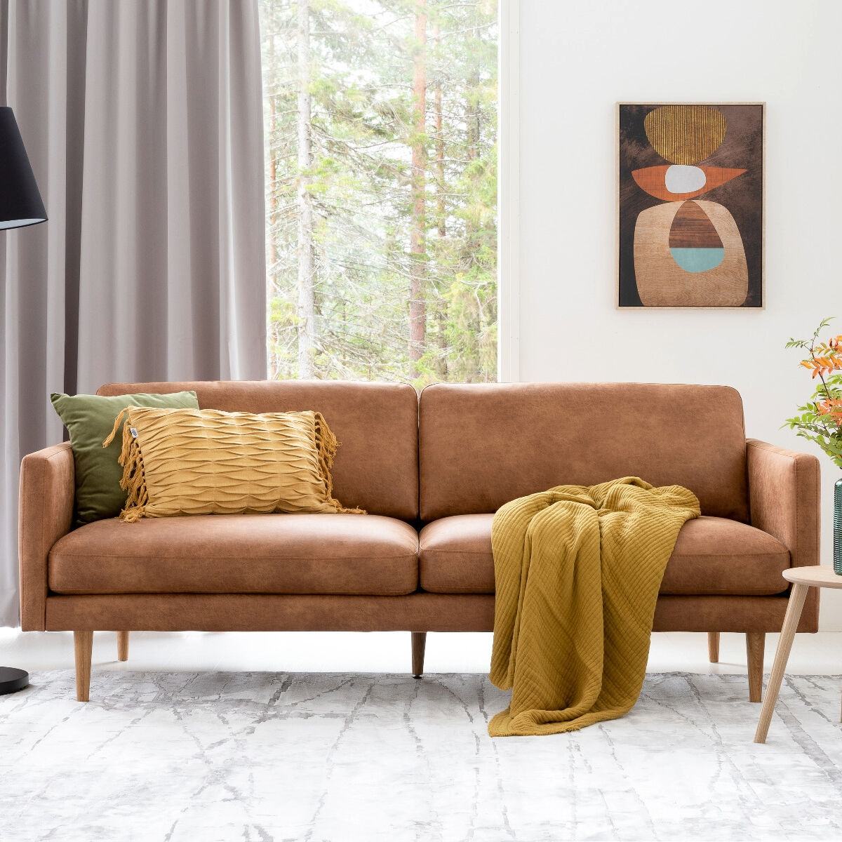 Classic 3-istuttava sohva konjakinruskea, Colorado 03, Jalka J-138 tammi