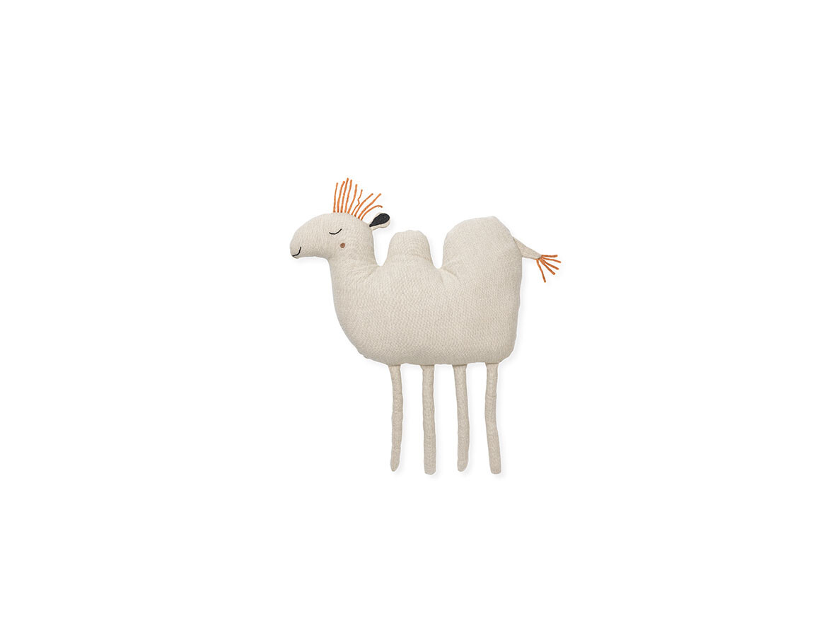 Camel-tyyny Natural on söpö lisä mihin tahansa lastenhuoneeseen. Luova ja eläväinen muotoilu yhdistettynä sen älykkääseen kaksoistoimintoon nallena ja tyynynä tekevät Camel-tyynystä ihanteellisen kaikkiin koteihin, joissa halutaan kodikas ja turvallinen ilmapiiri lapselle. Tyyny on väriltään kaunis luonnonbeige, joka sulautuu helposti moniin sisustustyyleihin ja sopii erityisesti moderniin ja skandinaaviseen kotiin. Ulkokangas on 100-prosenttista pellavaa, joka antaa tyynylle karhean rakenteen ja lisää miellyttävän tuntuisen elementin muotoiluun, kun taas hapsut ovat puuvillaa ja vuori kierrätettyä polyesteriä. Harvat mutta hyvin valitut yksityiskohdat antavat Camel-tyynylle luovan ilmeen ja tekevät siitä ihanteellisen kumppanin leikkeihin ja seikkailuihin, kun taas litteän ja pehmeän tyynyn muotoilu mahtuu helposti sohvalle tai sänkyyn, kun on aika sanoa hyvää yötä. Katso lisää Ferm Livingin tyynyjä täältä.