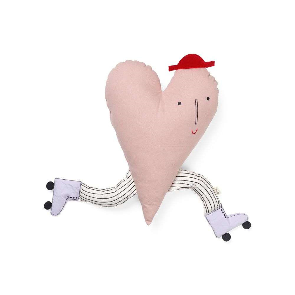 Ferm Living Sydän, jolla on vauhti päällä! Ferm Livingin Heart Cushion -tyyny on fantastinen lisä lastenhuoneeseen – mutta sopii myös lapsekkaalle sielulle, joka ajattelee sydämellään. Tämä kaunis tyyny on sydän, joka hymyilee, sillä on hattu päässä ja se rullaluistelee rullaluistimet jalassa. Tuote on luotu GOTS-sertifioidusta luomupuuvillasta ja sen täytteenä on käytetty kierrätettyä polyesteritäytettä. Sijoita tyyny lastenhuoneeseen, jossa se tuo iloa ja keskustelunaiheeksi rakkauden, elämän ja ihmisyyden – tai anna hauskan koristeellisen sydämen koristaa sohvaasi olohuoneessa! Tutustu kaikkiin Ferm Living lastentuotteisiin täällä