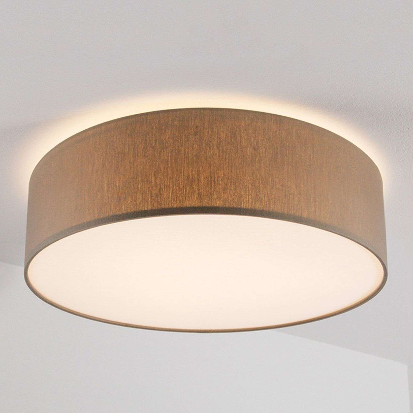 Valaisinrunko hienostunutta sintsiä – kattovalaisin Mara Hienostuneesti hohtava ja erittäin vankka koristekangas tekee pyöreästä Mara-kattovalaisimesta uniikin. Lampun hienostuneen harmaanruskea pidinosa ja hillityn valkoinen alapuoli luovat korostuksia ja sopivat yhteen kiiltävien huonekalujen kanssa sekä sisustustyyliin, jossa käytetään puuta. Spotissa olevat kolme 57 watin lamppua huolehtivat miellyttävästä valosta, joka hajautuu valkoisen sintsin vaikutuksesta. Se luo kutsuvan tunnelman kaikkiin tiloihin. Lyömätön yhdistelmä Läpimitaltaan 60 cm:n ja korkeudeltaan 17 cm:n lamppu on vaikuttava näky yksittäin tai usean valaisimen ryhmänä. Tarpeen mukaan Mara valaisee sekä pitkiä tiloja että pieniä huoneita tehokkaasti. Energialuokka: A++