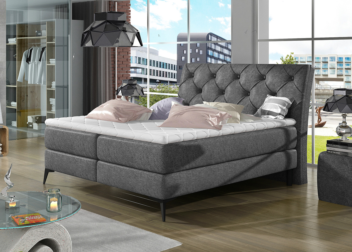 Sänky koostuu kahdesta vuodevaatelaatikosta, kahdesta joustinpatjasta, petauspatjasta ja sängynpäädystä ; runko on valmistettu puusta ja kalustelevystä ; verhoiltu harmaalla kankaalla ; patjan jäykkyys H3 (kehon paino 60-100 kg)