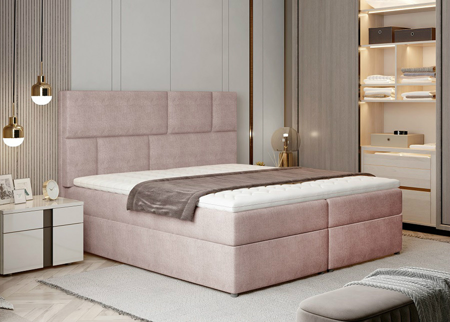 Sänky koostuu kahdesta vuodevaatelaatikosta, kahdesta joustinpatjasta, petauspatjasta ja sängynpäädystä ; runko on valmistettu puusta ja kalustelevystä ; verhoiltu vaaleanpunaisella kankaalla