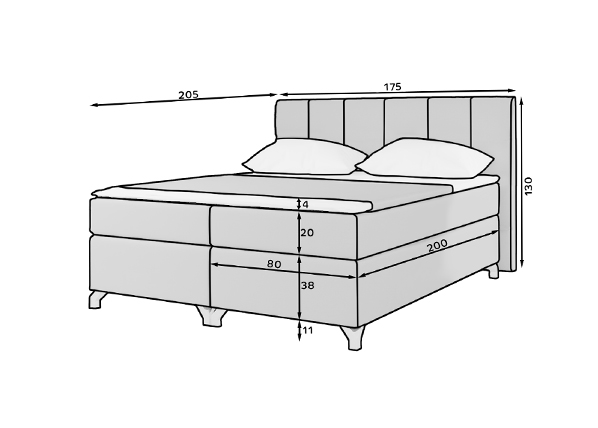 sänky koostuu kahdesta vuodevaatelaatikosta, joustinpatjasta, petauspatjasta ja päädystä ; runko on valmistettu puusta ja kalustelevystä ; patjassa on bonnell-jousitus, jousen halkaisija on 2,4 mm ; Petauspatjan täytteenä on vaahtomuovia