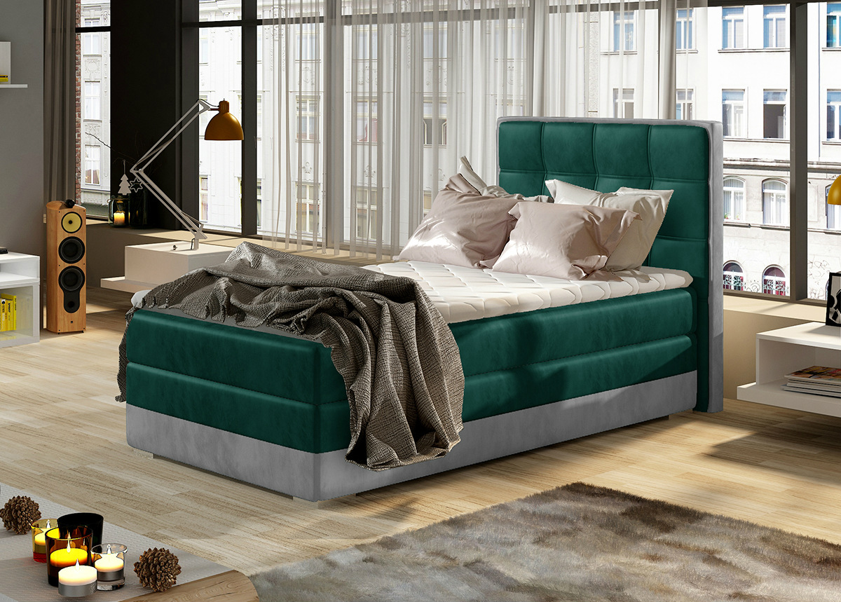 sänky koostuu vuodevaatelaatikosta, joustinpatjasta, petauspatjasta ja päädystä ; runko on valmistettu puusta ja kalustelevystä ; verhoiltu kankaalla ; viimeistely: vihreä/ harmaa ; patja keskijäykkyydellä H3 (kehon paino 60-100 kg)