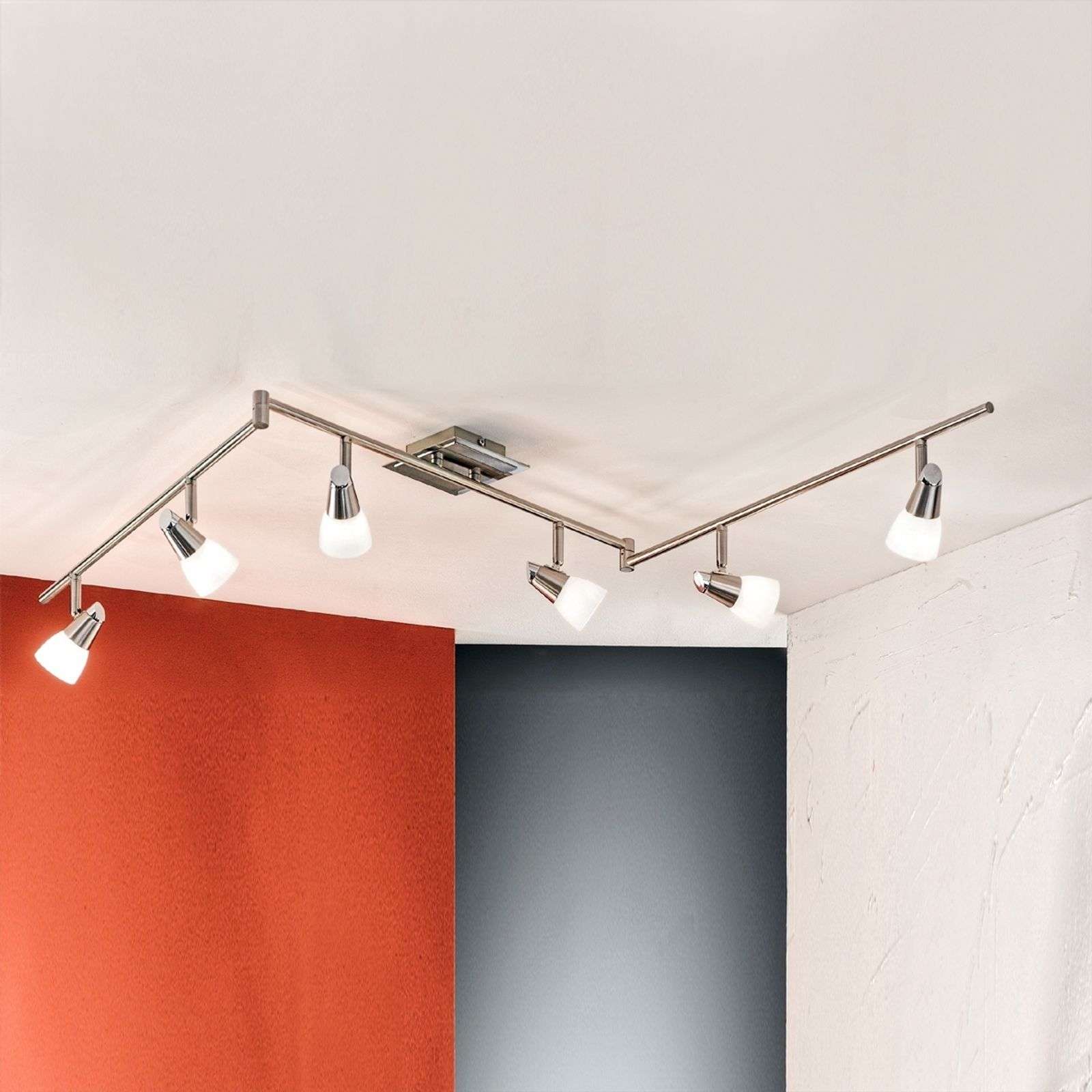 Viehättävä kattovalaisin MIRTEL vakuuttavalla opaalilasi-metalli-ulkonäöllä Tämä kattovalaisin, joka on valmistettu nikkeli-värillisestä lakatusta metallista, takaa pienimmän yksityiskohdan ja yhdistettynä valkoisiin opaalilasi-diffuusoreihin, on lyömätön moderni ja varmistaa, että jokainen huone valaistaan erittäin miellyttävällä tavalla. Lisäksi metallitangojen säädettävyys mahdollistaa valon mukauttamisen henkilökohtaisten vaatimusten mukaisesti. Energialuokka: A++