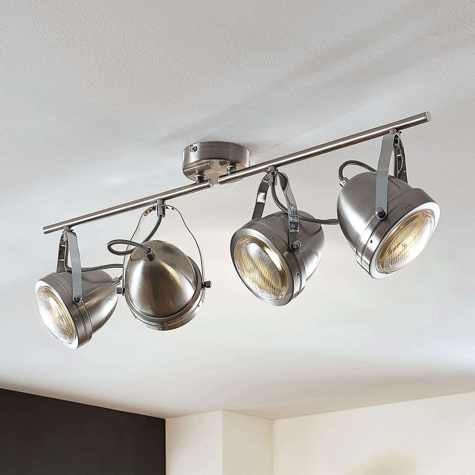 Hyvää valoa ja upea ulkonäkö – kattovalaisin Zoja retrotyyliin Hieman retroa ja hieman teollisuustyyliä – nelilamppuinen kattovalaisin Zoja tuo muotoilunsa ansiosta vähän molempia. Sen neljä kohdevalaisin muistuttavat ulkonäöltään vanhoja autoja, ja ne tuovat kotiin 1950-luvun tunnelmaa. Tällainen erityinen ulkonäkö tekee kattospotti Zojasta suositun valaisimen, joka sopii erittäin hyvin moderneihin sisustuksiin. Spottivalaisin synnyttää riittävästi valoa, joka jakautuu tasaisesti ja häikäisemättä huoneeseen. Energialuokka: A++
