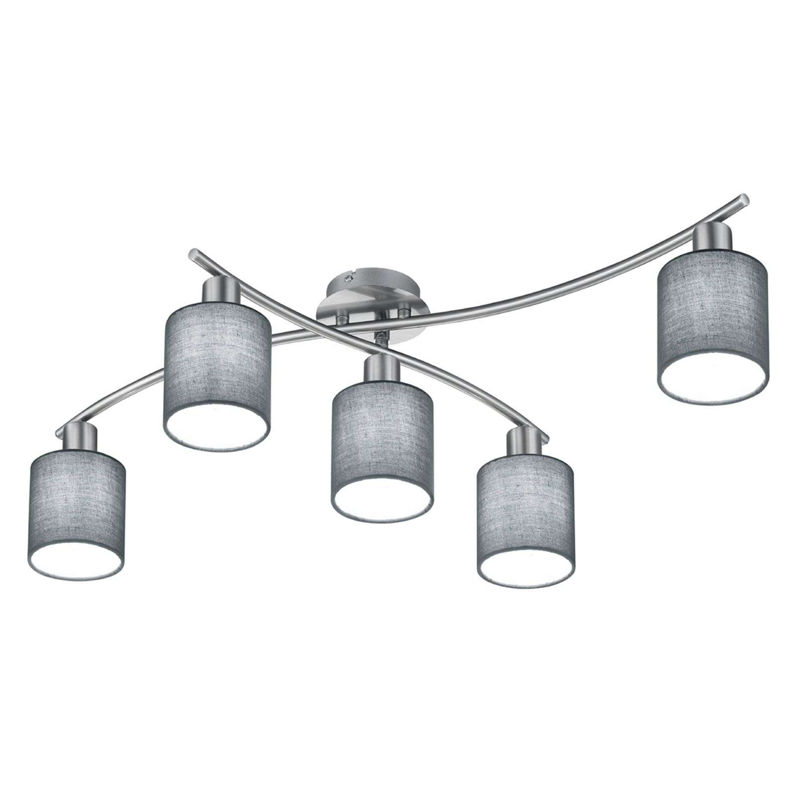 Kattovalaisin Garda harmailla varjostimilla ja viidellä lampulla Kattovalaisin Garda sopii harmailla tekstiilivarjostimillaan, mataksi nikkelöidyllä metallirungollaan ja niiden tuomalla modernilla ilmeellään lukuisiin erityylisesti sisustettuihin huoneisiin. Se tuo suureen olohuoneeseen fantastisen perusvalaistuksen, jossa huomiota ei ole kiinnitetty pelkästään valotehokkuuteen, vaan myös valon tunnelmalliseen jakautumiseen. Varjostimet ovat jakautuneet tasaisin välimatkoin yhteensä 75 cm:n matkalle. Koska valo pääsee sekä alaspäin että pehmeästi sivuille kangasvarjostimien läpi, syntyy hyvin erityinen valotunnelma. Energialuokka: A++