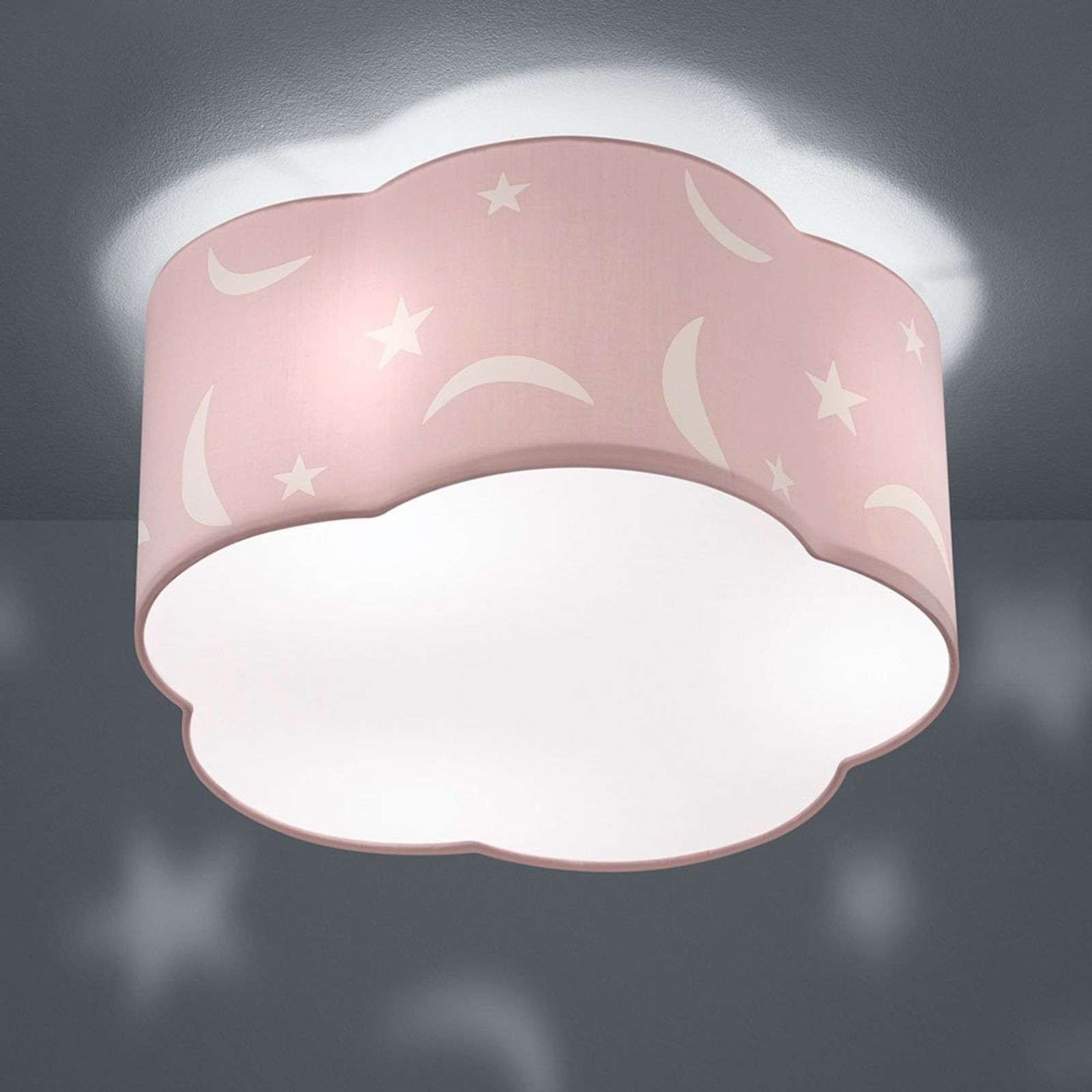 Tekstiilikattovalaisin Moony lastenhuoneeseen Kaunis kukanmallinen muoto ja nätti koriste, joka ei korostu liikaa ja joka sopii kaikkiin lasten huoneisiin: tällainen on kattolamppu Moony, joka koostuu metallisesta kiinnikkeestä ja tekstiilivarjostimesta. Varjostimen sivulla on tähti- ja kuukuviot, ja alhaalla on valkoinen diffuusori, jonka kautta kolmen lampun (eivät sisälly toimitukseen) valo pääsee jakautumaan tasaisesti ja häikäisemättömästi huoneeseen. Tekstiilivarjostimen pieni etäisyys kattoon tekee kauniin valoefektin kattoon. Energialuokka: A++