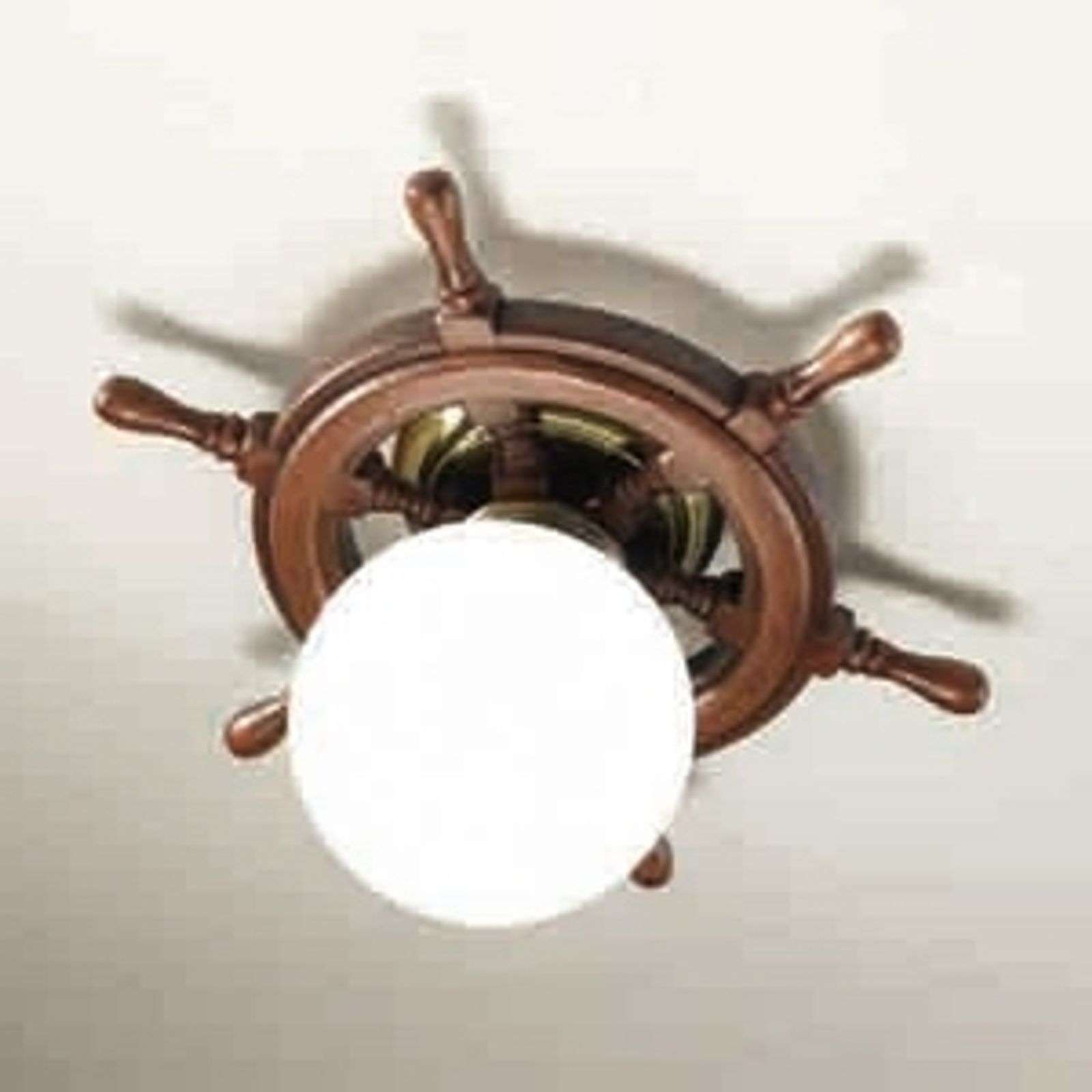 Jännittävässä Timone-kattovalaisimessa yhdistyvät klassinen ja moderni Timone-kattovalaisin, jonka voi kiinnittää myös seinään, on suunnittelultaan ja toteutukseltaan ainutlaatuinen. Sen lasipallo on kiinnitetty tyylikkääseen ruoriin. Näin syntyy kiehtova yhdistelmä modernisuutta ja merellistä tyyliä, joka ihastuttaa muitakin kuin vain merirosvoelokuvista pitäviä. Lasista ja puusta muodostuvaa kokonaisuutta täydentää korkealaatuinen messinkirunko. Tämä valaisin, joka edustaa venetsialaisen valaisintaiteen pitkää perinnettä, on aivan erikoislaatuinen valonlähde, joka pääsee oikeuksiinsa erityisesti merellisessä sisustuksessa. Tämä korostusvalonlähde tarjoaa myös upean mahdollisuuden omalaatuisen ilmeen luomiseen moderniin ja yksinkertaisesti sisustettuun tilaan. Puun ja messingin jännittävät korostukset huolehtivat sekä viihtyisästä tunnelmasta että todellisen katseenvangitsijan luomisesta. Energialuokka: A++