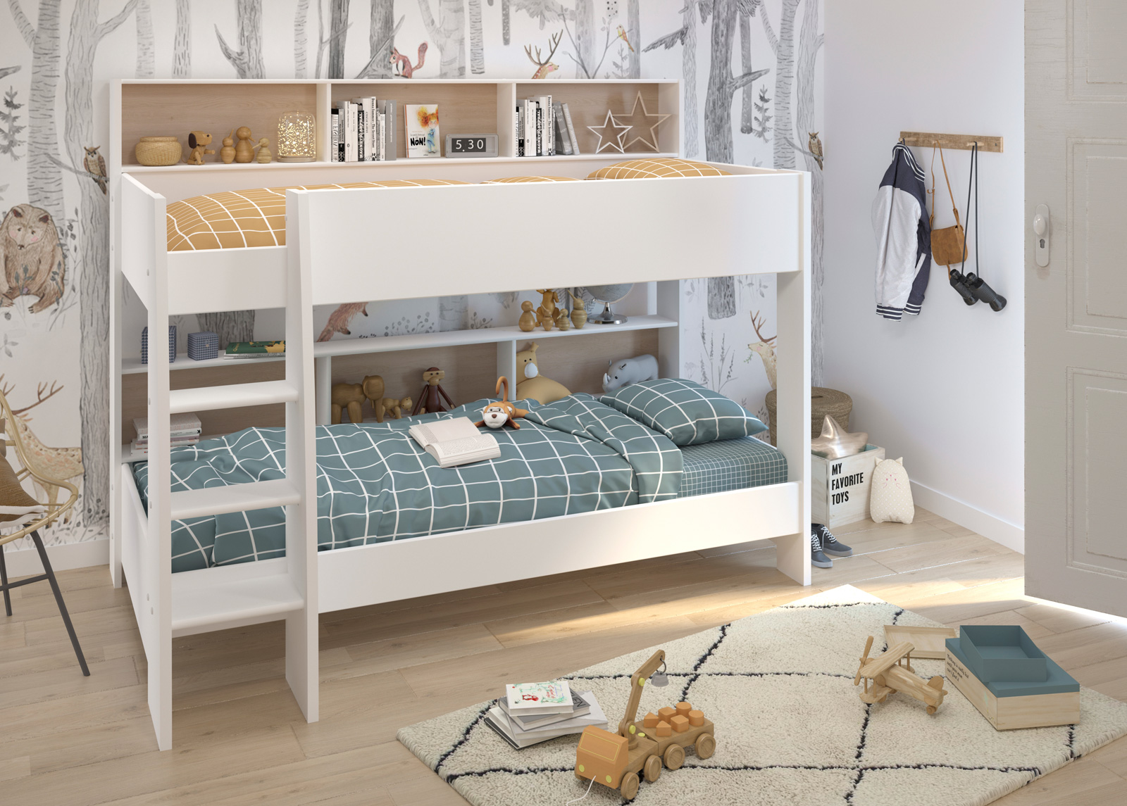 Kerrossänky on valmistettu korkealaatuisista 15 mm: n, 18 mm: n ja 22 mm: n huonekalulevyistä, jotka täyttävät eurooppalaiset terveysvaatimukset ; sänky on maalattu valkoiseksi