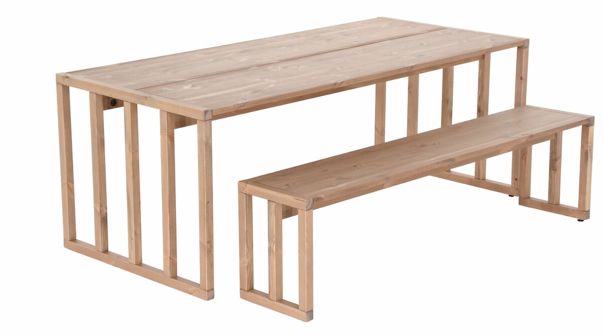 Sisustussuunnittelija Linda Bakin Vekelle suunnittelema Kioto-tuotesarja muodostuu selkeistä linjoista ja maanläheisistä sävyistä. Minimalistisen ja ajattoman 6-hengen ruokailuryhmän materiaalina on käytetty kestävää mäntyä. Pinta on käsitelty erityisesti ulkokäyttöön tarkoitetulla lakalla. Katseenvangitsijana kalusteissa toimii upea rimoitus, jossa on vaikutteita niin suomalaisesta kuin japanilaisesta sisustustyylistä.