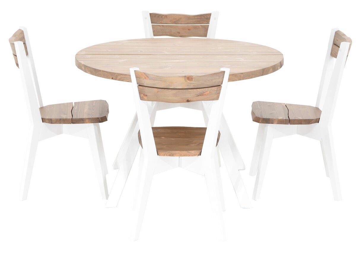 4-hengen pyöreä ruokailuryhmä koostuu mäntyisistä Lana kalusteista. Kaunis, pyöreä Lana pöytä ja muodokkaat tuolit ovat valmistettu kestävästä ja ekologisesta männystä. Pöydän kansi muodostuu kahdesta liimapuulankusta ja niiden liimauksessa on käytetty vedenkestävää liimaa. Tuolit ovat upeasti muotoillut ja kestävät. Tuotteiden jalat ovat myös mäntyä. Pöydän kannessa ja tuolin istuin- ja selkänojassa näkyy puun syyt ja kuviointi kauniisti, pinta ei ole tasainen. Pöydän upea pinta sekä tuolien istuin-ja selkänojat valmistetaan erikoisharjaamalla, jonka tarkoituksena on nimenomaan korostaa puun luonnollisia ominaisuuksia, josta epätasaisuudet johtuvat. Tuolit toimitetaan niin, että runko on kahdessa osassa, penkin kansi ja istuinosa irrallaan. Pöytä toimitetaan jalat irrallaan. Lisätietoa mat…