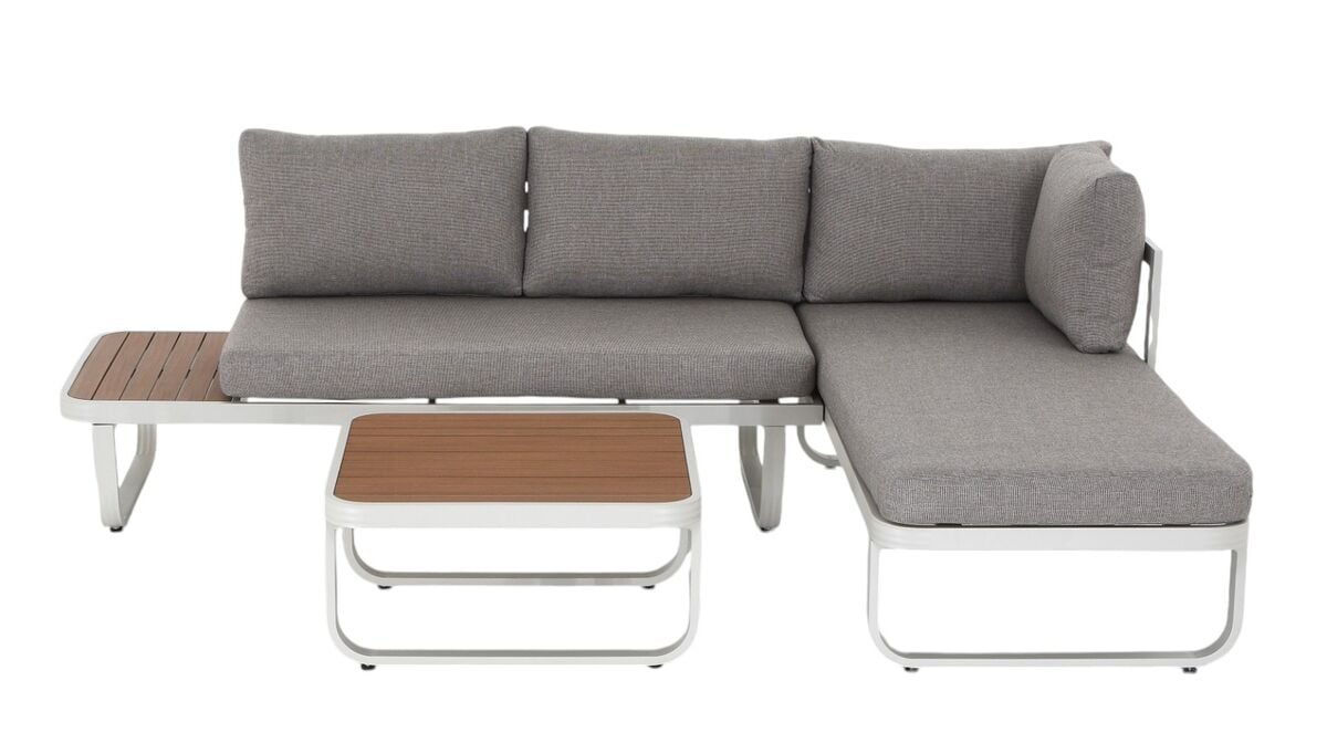 Lumme avokulmasohva ja sohvapöytä tuovat terassillesi modernia tyylikkyyttä ja rentoa mukavuutta. Ruostumattomasta ja huoltovapaasta alumiinista valmistettu runko kestää vaihtelevat sääolosuhteet, ja aintwood-puukomposiittipinnat sohvapöydässä sekä sohvan päädyssä lisäävät eleganttia ilmettä. Sohvan verhoilussa käytetty laadukas, UV-suojattu ja vettä hylkivä olefin-kangas on suunniteltu kestämään ulkokäyttöä. Paksut pehmusteet tarjoavat miellyttävän istuinmukavuuden – täydellinen valinta niin rentoihin kahvihetkiin kuin pidempiin illanviettoihin. Lumme avokulmasohva ja sohvapöytä on tarkoitettu katettuun ulkotilaan. Pehmusteet tulee aina säilyttää sateelta suojassa, jotta ne säilyvät hyväkuntoisina. Tässä kokonaisuudessa yhdistyvät tyylikäs muotoilu ja käytänn&…