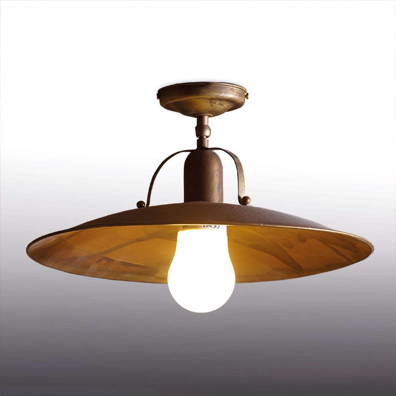 Osteria-kattovalaisin, rustiikkista maalaistalon tyyliä Tasaisilla sävyillään ja hapetetulla messinkipinnallaan Osteria muistuttaa antiikkista maalaistalon valaistusta, ja tuo mukanaan sen erityisen, ainutlaatuisen charmin. Maalaistalon tyyli on varmasti laaja käsite, ja siksi, kun katsot tätä kattovalaisinta, mietit ehkä myös Välimeren huviloita, joihin se sopii myös erityisen hyvin. Energialuokka: A++
