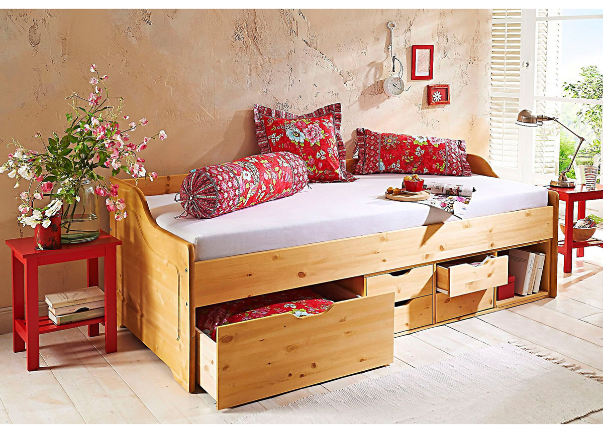 toimitukseen sisältyy sänky, 4 laatikkoa ja vuodevaatelaatikko pyörillä ; sänky on valmistettu männystä ; viimeistelty lakalla ; toimitus sisältää tukevan mäntysälepohjan (säleiden paksuus 15 mm, yhden säleen leveys 68 mm)