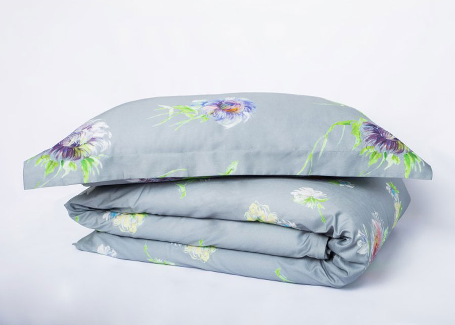 ylelliset vuodevaatteet ovat laadukasta satiinikangasta ; harmaalla pohjalla on kukkakuvio ; toimitukseen sisältyy pussilakana 200×210 cm ja 2 tyynyliinaa 50×60+5 cm mitoissa ; tyynyliinassa on 5 cm levyinen reunaosa