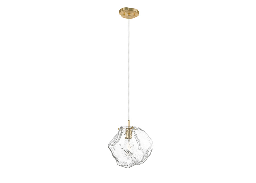 moderni kattovalaisin, teho enintään 1×40 W, kanta E27 ; viimeistely: kupu on läpinäkyvää jäälasia, kullanväriset metalliosat ; säädettävä ripustuskorkeus 42-152 cm ; valonlähde ei sisälly toimitukseen