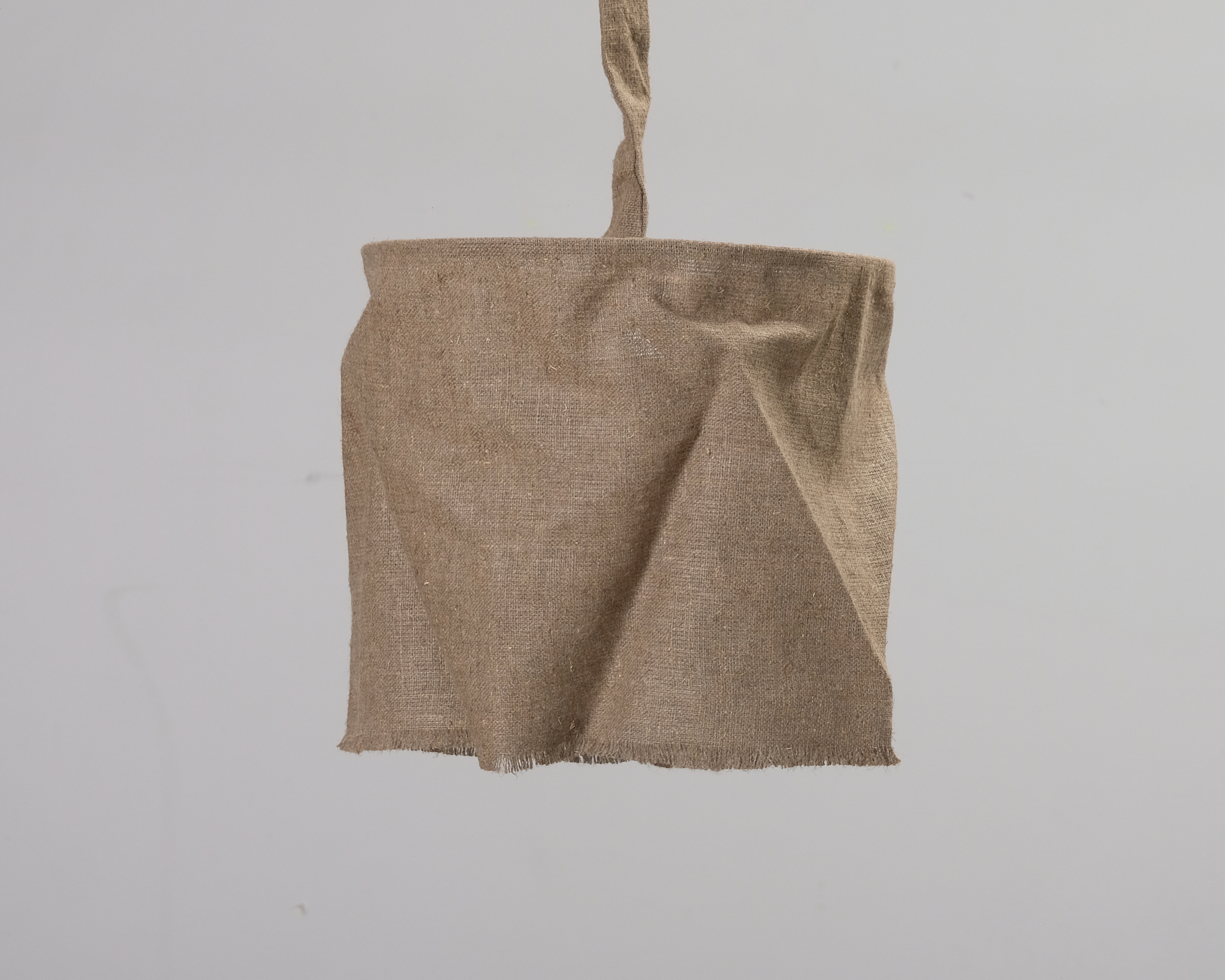 Persoonallinen riippuvalaisin ruskealla kangasvarjostimella. Valaisimen orgaaninen muotokieli ja tuntuma tuo lämpöä sisustukseen ja se sopii hyvin sekä kotiin, mutta myös esimerkiksi mökille.