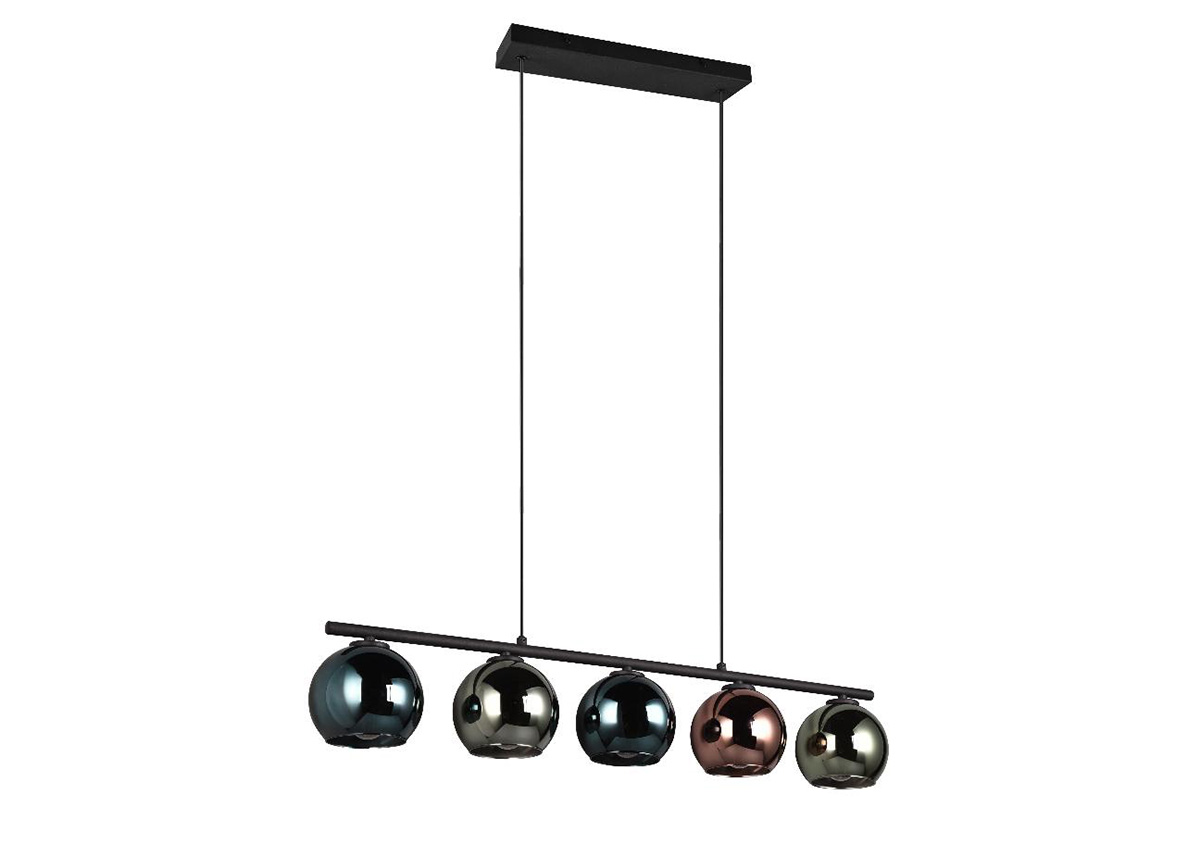 Kattovalaisimen teho: 5 x E14 (valonlähteet ei sisälly toimitukseen) ; Materiaali: metalli ja lasi ; Väri: kuvuissa on on vihertävä, harmahtava ja sinertävä sävy ; Kupu Ø 13 cm ; säädettävä korkeus