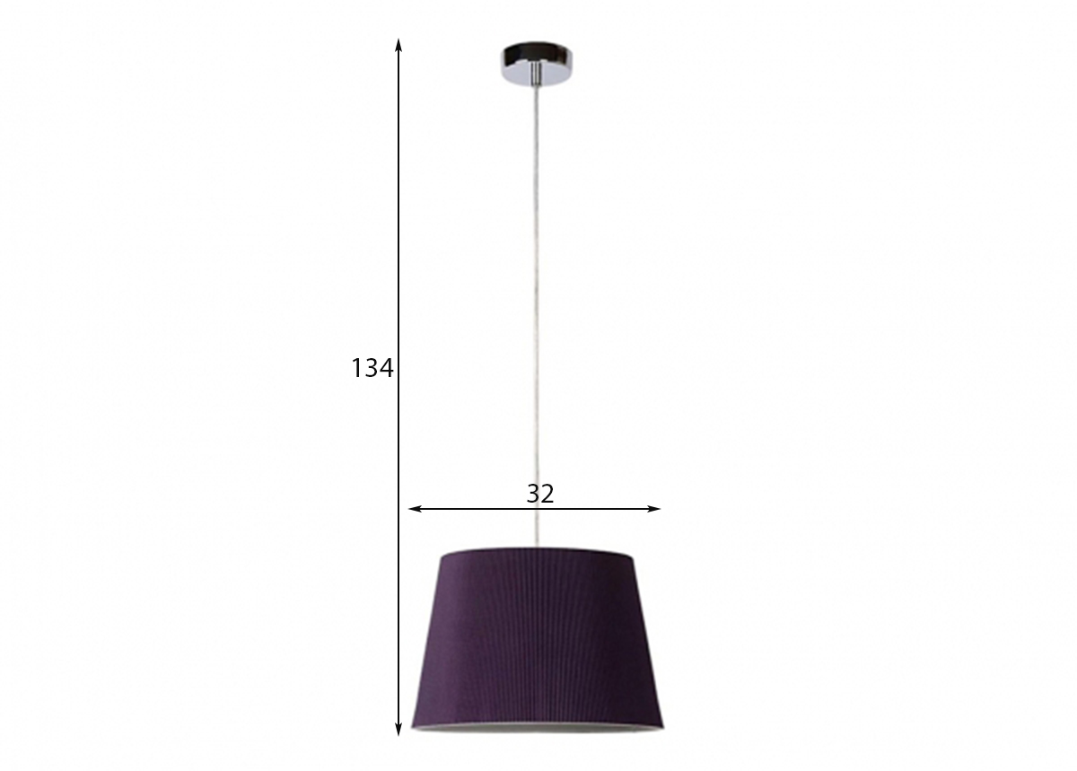 materiaali: metalli, tekstiili ; varjostimen mitat: 32x32x22 cm ; sijoituskorkeus enintään 134 cm ; väri: violetti ; Sopiva valonlähde: 1×60 W / E27 / 220V ; lamppu ei sisälly toimitukseen ; Suojausluokka: IP20