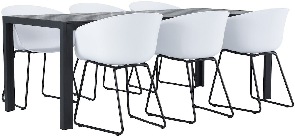 Moderni ja helppohoitoinen puutarharuokailuryhmä kuudelle. Pöytä valmistettu huoltovapaasta alumiinista sekä aintwood puukomposiitista. Seattle tuoleissa on tukeva teräsrunko, joka on maalattu säänkestävällä maalilla. Tuolin istuin osa on helposti pyyhdittävää sileää muovia. Tuolin painoraja on 120 kg.