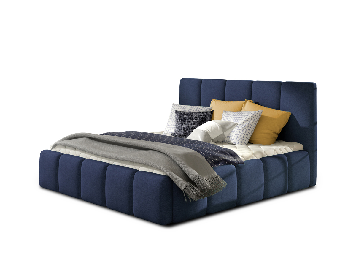Sängyn runko on valmistettu puusta ja kalustelevystä ; Sängynpäädyn takaosa on verhoiltu mustalla kankaalla ; Sänky on verhoiltu kankaalla ; Sängyssä on 1 vuodevaatelaatikko ; sängynjalat ovat muovia