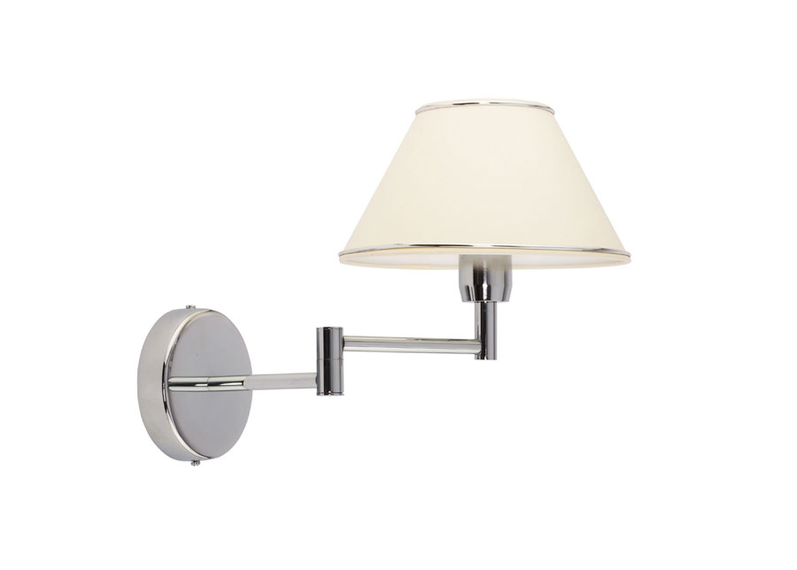 klassinen seinälamppu nivelellä ; teho enintään: 1×60 W, kanta E27 ; viimeistely: kromi + ecru ; varjostin on verhoiltu kankaalla, ylä- ja alareunsassa on kromiosa ; kromatut metalliosat ; valonlähde ei sisälly toimitukseen