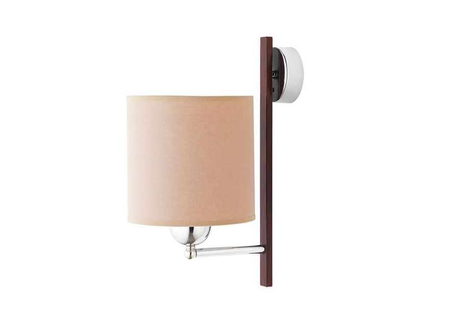 Klassinen seinälamppu on metallia ; teho enintään 1x40W, kanta E27 ; viimeistely: kromi + wenge, cappuccino ; Varjostin on capuccino-väristä kangasta ; valonlähde ei sisälly toimitukseen