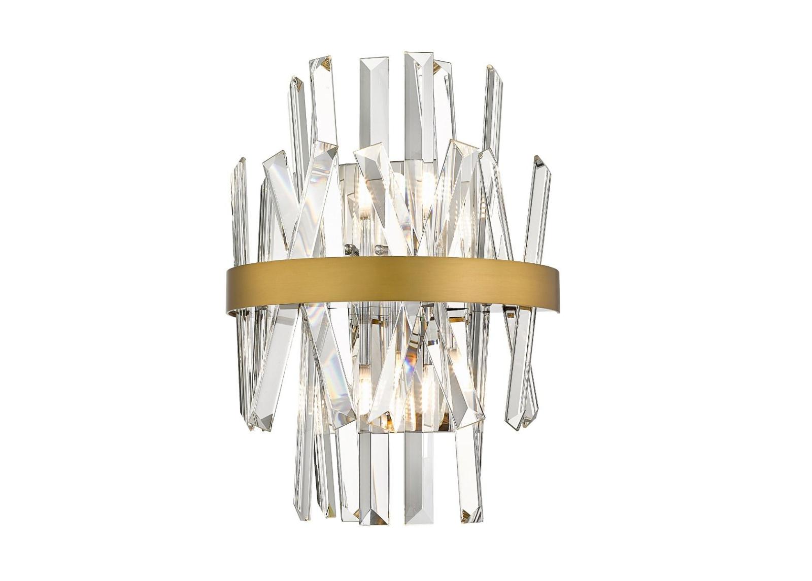Tyylikäs seinälamppu on valmistettu metallista ja lasista ; teho enintään: 2×28 W, kanta G9 ; viimeistely: antiikkikulta väri, kirkas lasi ; valonlähteet eivät sisälly toimitukseen ; Suojausluokka: IP20