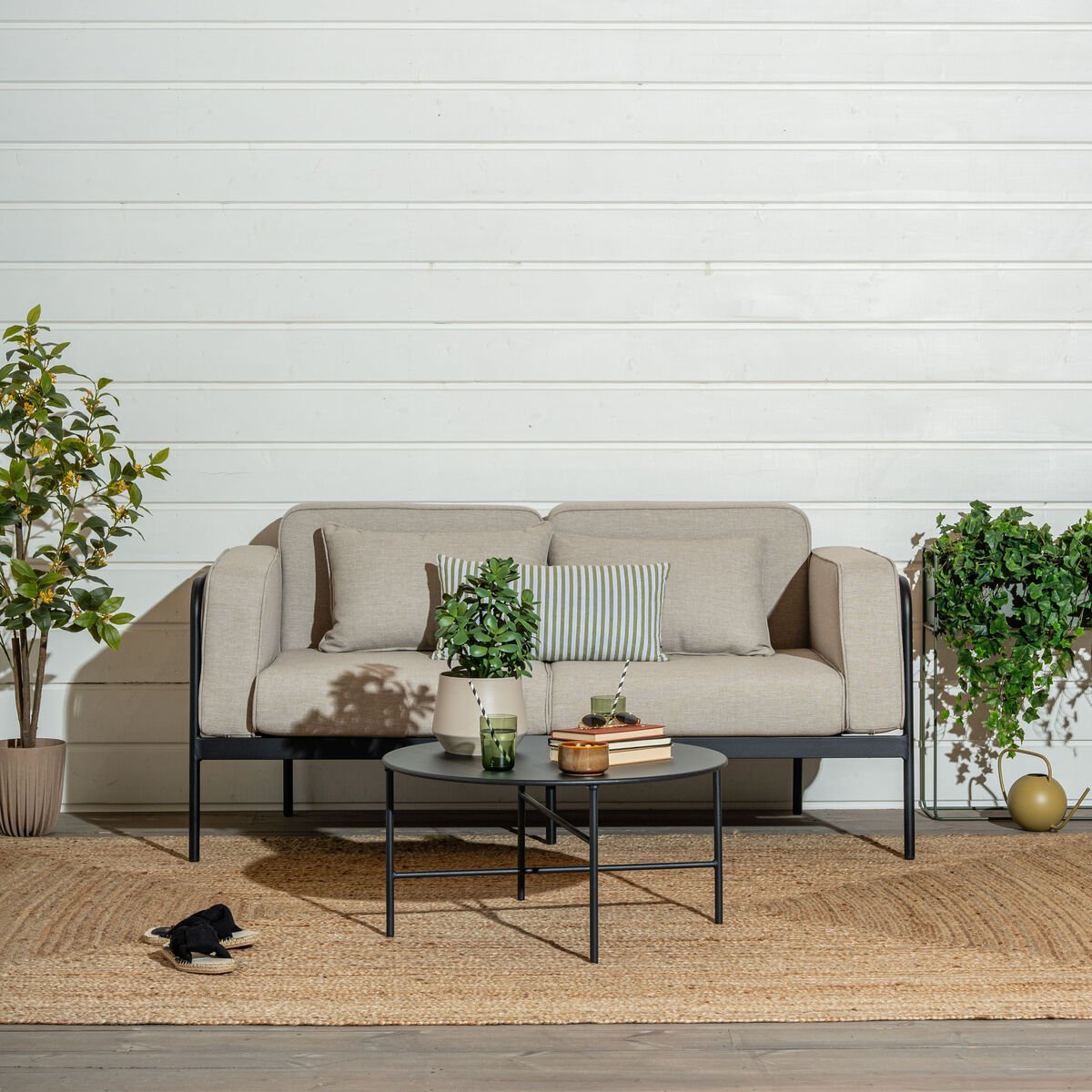 Trondheim 2,5-istuttava sohva yhdistää huolettoman käytön ja modernin tyylin. Sen kestävä alumiinirunko on täysin ruostumaton ja huoltovapaa, joten sohva säilyy siistinä vuodesta toiseen. Muhkeat pehmusteet on verhoiltu laadukkaalla vettähylkivällä kankaalla, joka kestää hyvin myös auringon UV-säteilyä. Lisäksi kankaan alla oleva TP-liner-kalvo estää kosteuden imeytymisen, joten pehmusteet pysyvät pintaa lukuun ottamatta kuivina myös sateen jälkeen. Kevyet pehmusteet on helppo nostaa suojaan tarvittaessa, ja minimalistinen muotoilu sopii monenlaisiin ulkotiloihin. Trondheim on täydellinen valinta terassille, parvekkeelle tai puutarhaan – yhdistä muihin ulkokalusteisiin ja luo oma rento kesäkeitaasi!