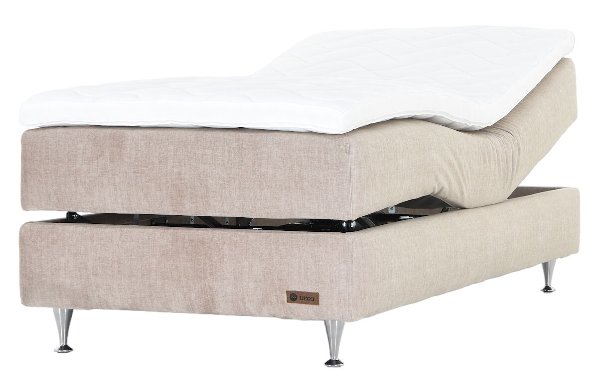 Laadukas ja mukava Unia Platina moottorisänkypaketti. Jousistona yksilöllisesti joustava 16 cm korkea hunajakenno pussijousitus. Jousia 330 kpl/m2. Jousen lankavahvuus: M jäykkyydessä 1,8 mm, L jäykkyydessä 1,9 mm ja XL jäykkyydessä 2,0 mm. Pussijousituksessa jokainen jousi pakattu omaan kangaspussiin. Tämän ansiosta jokainen jousi pystyy joustamaan itsenäisesti tarpeen mukaan. Hiljaiset ja vahvat moottorit tekevät sängystä erittäin vakaasti ja pehmeästi säädettävän vuoteen. Moottorissa on kiinni paristo sähkökatkoksen varalle, joten sängyn päädyt saa laskettua alas sähkökatkoksen aikana. Moottorisängyt on verhoiltu ylellisellä huonekalukankaalla. Sängyn makuupinta on verhoiltu joustavalla Bamboo joustokankaalla. Tämä takaa sen, että verhoilu joustaa nukkujan ja jousiston välissä. Langaton kaukosäädin…