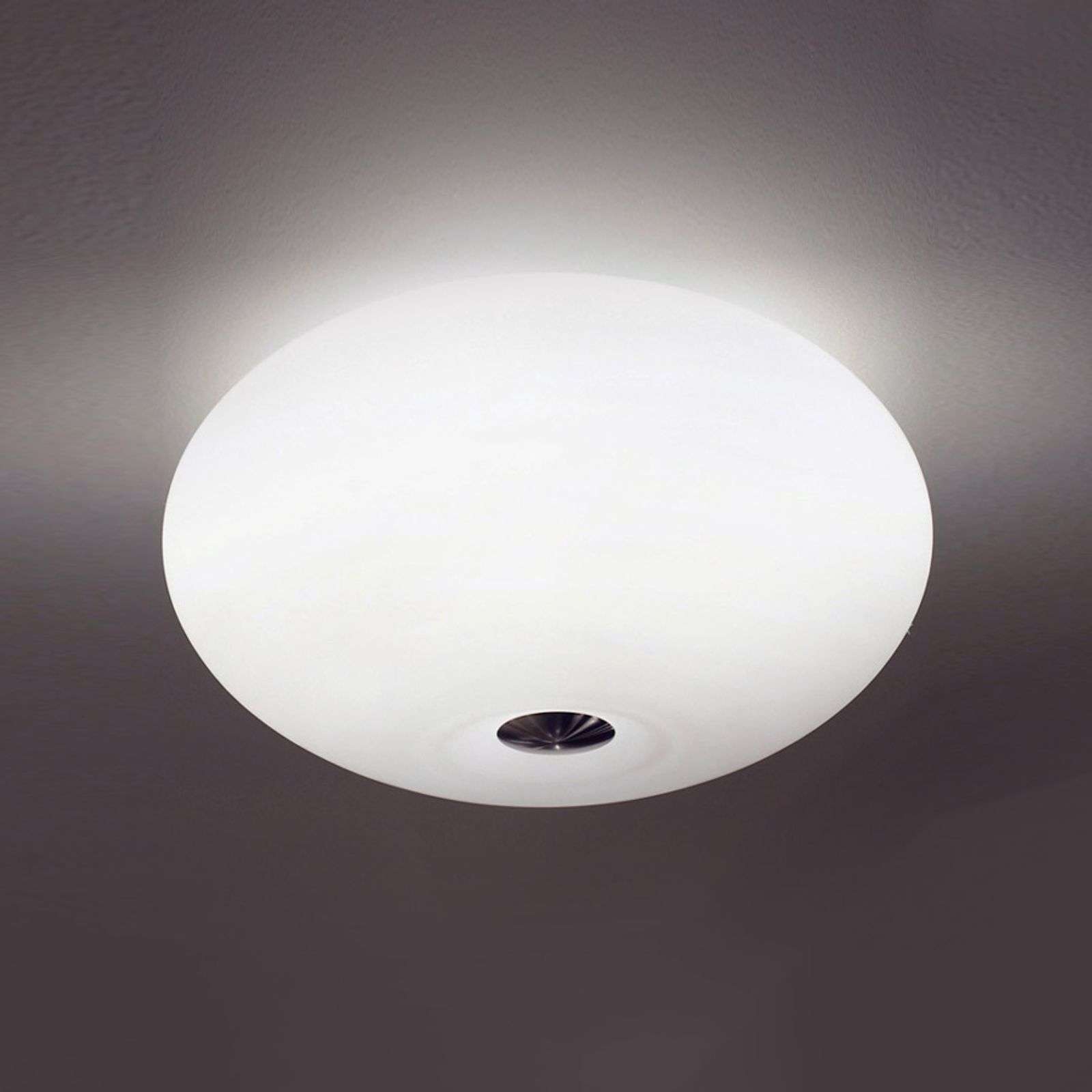 Kaunis Aih-kattovalaisin luo pehmeän tilavalaistuksen Ulkoilmassa oleskellessamme päivänvalo vaikuttaa meihin suotuisasti ja voimme valita tiettyjä oleskelupaikkoja sen mukaan, haluammeko valoa vai varjoa, kun taas sisätiloissa valaistusolosuhteet pysyvät etupäässä samanlaisina. Oikeanlaisen valaisimen valinta on siten erittäin tärkeä asia, sillä valaistus vaikuttaa hyvinvointiimme. Aih-kattovalaisimen kohdalla asiaa ratkaistaessa on valinnanvaraa, sillä on mahdollista valita kolmen erivärisen lasivarjostimen välillä. Mattapintaisen valkoisen lisäksi sen voi saada kiiltävänä, hohtavan valkoisena. Myös mattapintainen kermanvärinen versio luo aivan omanlaisensa valaistuksen. Tilan säästämiseksi valaisin asennetaan suoraan kattoon, joten se luo tilaan ylhäältä päin levittäytyvän valaistuksen, jonka ilme vaihtelee värivalinnasta riippuen. Henkeäsalpaavan kaunis varjostin vakuuttaa pyöreällä, hieman litistetyllä muodollaan. Aih-kattovalaisinta dominoi huomiota herättävän varjostimen kauneus; sitä vastoin valaisimen alumiininen, sisäänpäin kohdistuva osa on tuskin näkyvissä. Energialuokka: A++