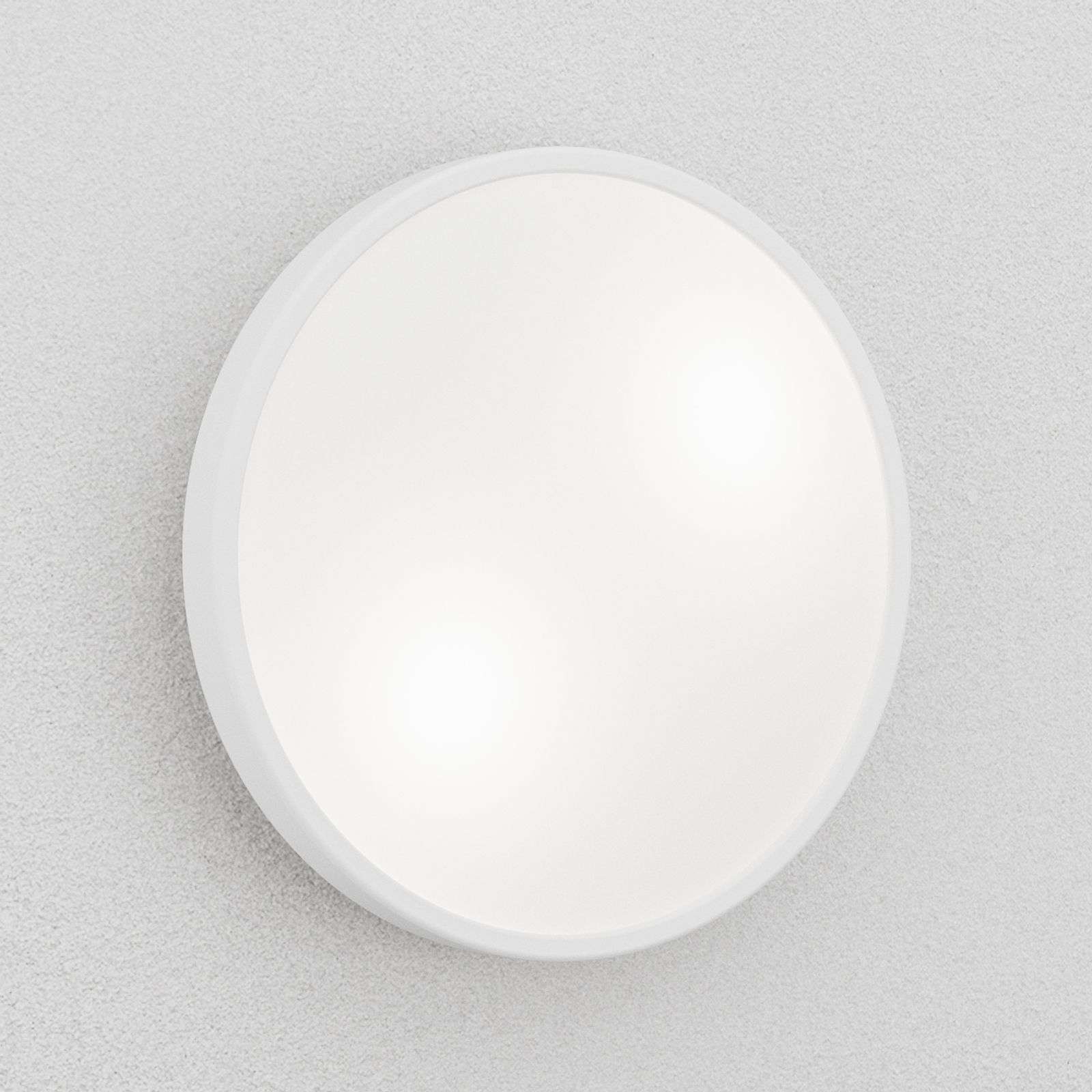 Pelkistetty ja ajattoman tyylikäs: Plaza-katto- ja -seinävalaisin Muotoilultaan selkeä ja pelkistetty Plaza-seinävalaisin sopii mitä moninaisimpiin tiloihin, kuten käytävään tai pienempien tilojen yleisvalaistukseen. Valkoisesta lasista valmistettu päällysosa luo kirkkaan mutta häikäisemättömän valaistuksen. Valaisinta ympäröi kapea metallireunus. Plaza voidaan asentaa myös kattoon, ja valaisimessa voi käyttää energiansäästölamppua. Energialuokka: A++